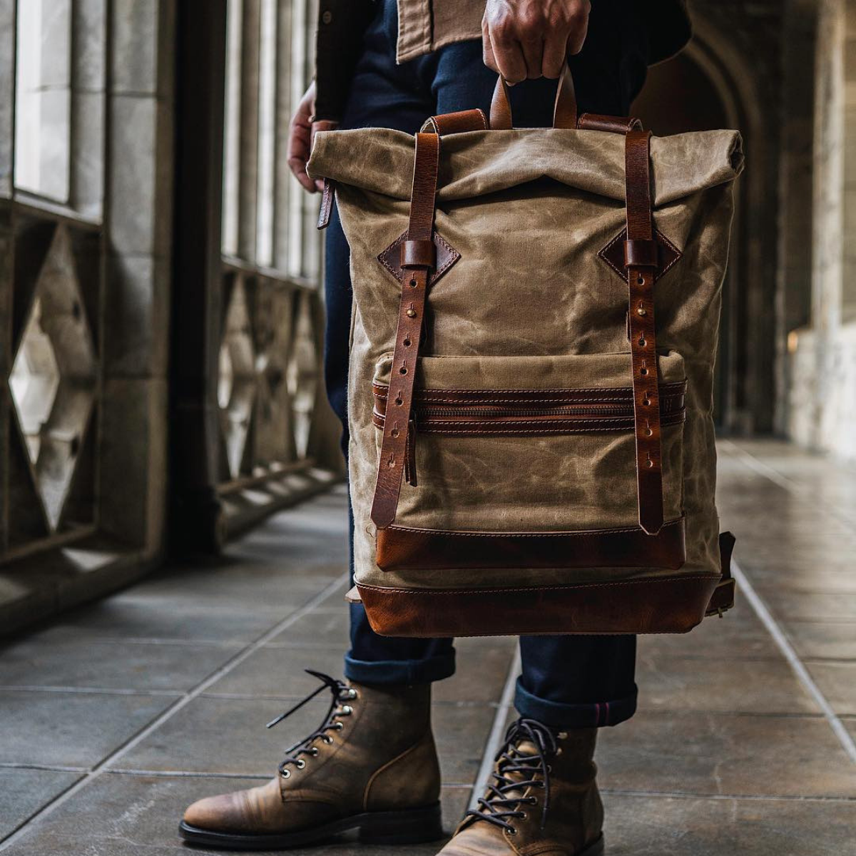 \n18 Oz thick hand waxed cotton canvas.
