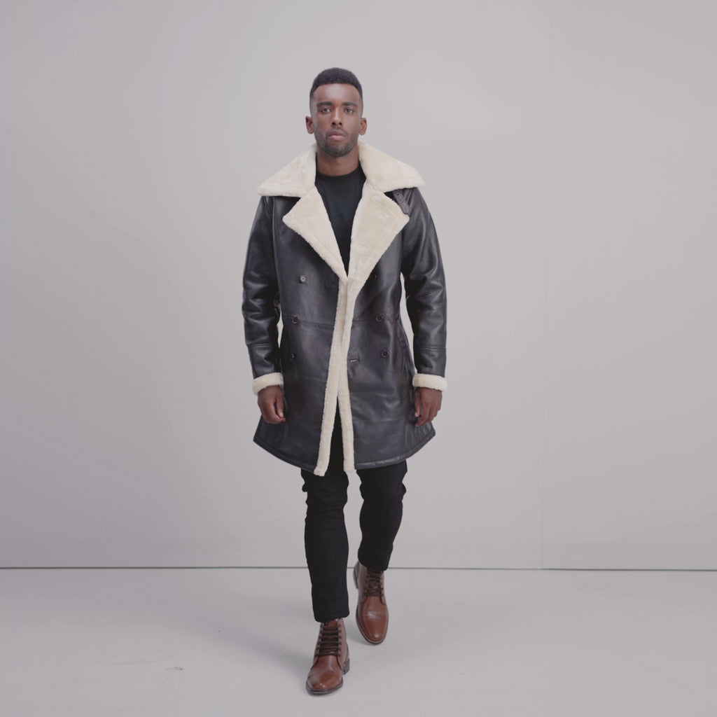 Experience the ultimate blend of comfort and style with the Charles Brown Leather Shearling Double-Breasted Coat. Order now and enjoy free shipping in the USA and worldwide.