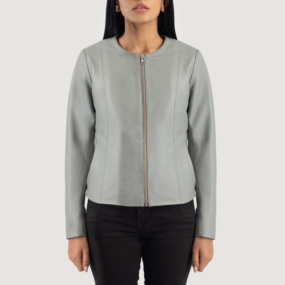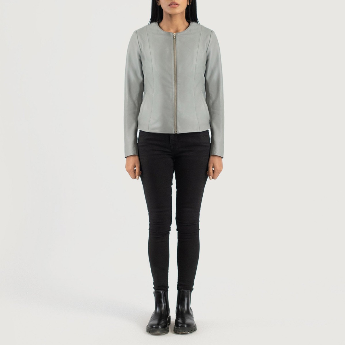 Made of high-quality sheepskin leather, this jacket is designed to elevate your style and keep you looking fabulous all year round. The collarless design adds a modern touch, making it perfect for both casual outings and special occasions.