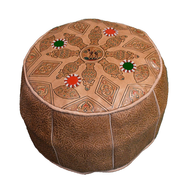 Authentic Moroccan Hand made leather pouf .These wonderful genuine leather poufs are handmade by skillful artisans in the Marrakech souk market and they are made of great quality genuine leather.A Moroccan staple that creates a low seating option that makes for a warm and cozy atmosphere, This Moroccan pouf also adds a specail touch to any room. They have a zipper throughout the bottom so you can easily fill the poufs with polyester material you would usually use to stuff pillows.