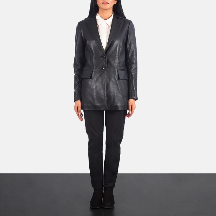 Upgrade your wardrobe with the Marilyn Black Leather Blazer and make a stylish statement wherever you go. Order now and experience the luxury of owning a piece that combines craftsmanship with contemporary fashion.