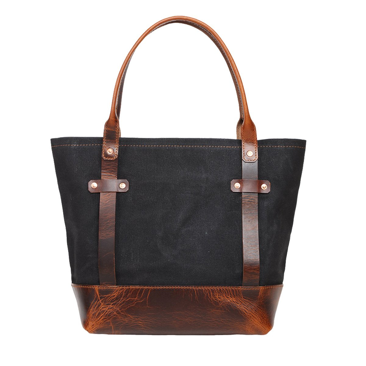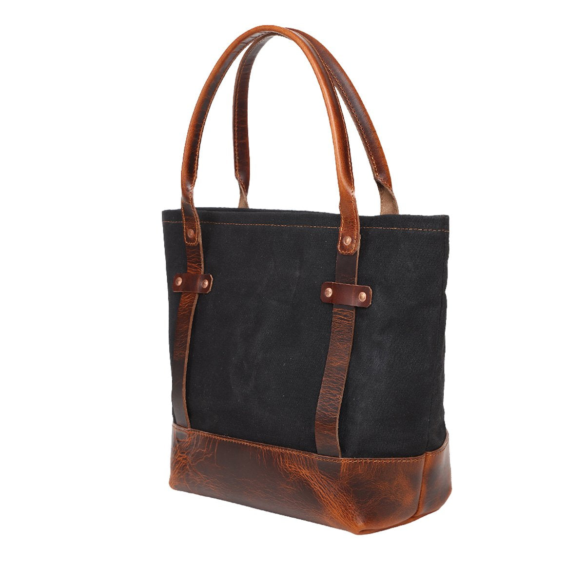 Large sized tote bag.\nSturdy yet simple design.\nStrong double stitch construction.\nDurable leather bottom.\nWater repellent.\nZipper pocket on the inside.\nZipper Secured main compartment.\nTop Grain Leather.\nSolid Brass Hardware.\nHand Set Copper Rivets.\nA perfect tote for the rustic loving ladies. A big spacious tote bag which can manage all the clutter and the chaos with ease and keep you organised at all times.\nA beautiful leather bottom which gives a solid base, zip closure on top and pockets on the inside. This tote bag is big, strong, built like a tank and will last for many years to come.\nMaterials\n18 Oz thick hand waxed cotton canvas.\n5 0z (2mm) thick semi vegetable tanned hand waxed leather.\nShoulder straps made of 10 0z (4mm) thick semi vegetable tanned hand waxed leather.\n100% solid brass hardware.\nHand Set solid copper rivets.\nYKK Brand zippers.\nSpace \n1 Big compartment (zipper secured).\n1 zipper enclosed pocket on the inside for wallet, cards/cash etc.\n1 Open pocket for phones, coins, keys etc.\nDimensions \nHeight – 12.5″\nLength – 16″\nWidth – 6″\nCall/ Whatsapp: +91 90412 20044\nEmail: contact@beastcraft.in