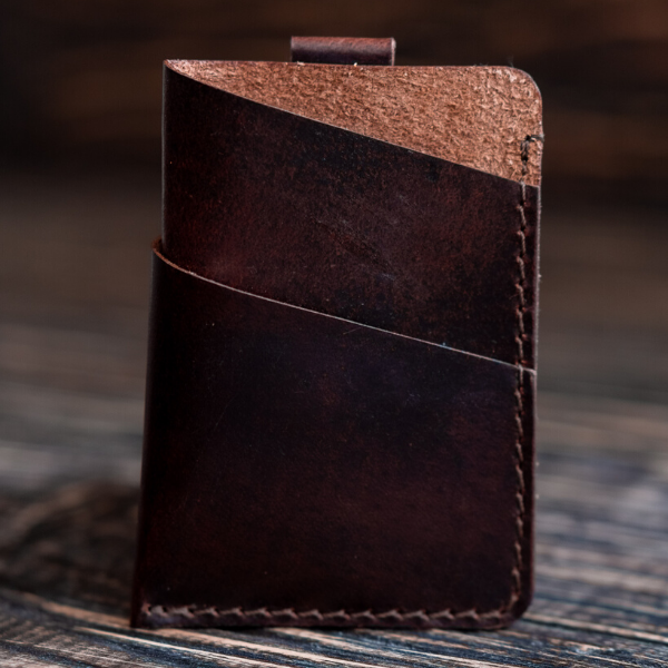 Hybrid Design. \nCard Holder cum Wallet.\nVertical wallet.\n100% leather, no lining.\n1 top insert slot with pullout strap.\n2 large card slots.\nTop quality genuine Leather.\nSimple minimalist top insert design with a 2 card slots and 1 top slot for folded bills. Can hold multiple cards per slot. Pull out strap to easily take out cards or cash from top slot.\nMaterials\n4 0z (1.6 mm) thick hand waxed genuine leather.\nHigh quality Japanese nylon thread.\nSpace\n2 Card slots. (each card slot is large enough to hold multiple cards)\n1 Cash slot. (For folded bills)\nDimensions \nHeight – 4″\nLength – 2.5″\nCall/ Whatsapp: +91 90412 20044\nEmail: contact@beastcraft.in